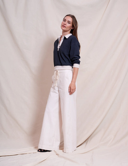 Cream and Navy Sleeveless Sweater and Pant Set