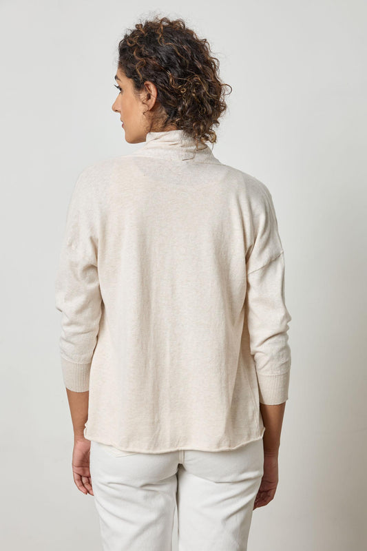 White Thermal Stitch Ragland Sweater with Powder Blue Detail