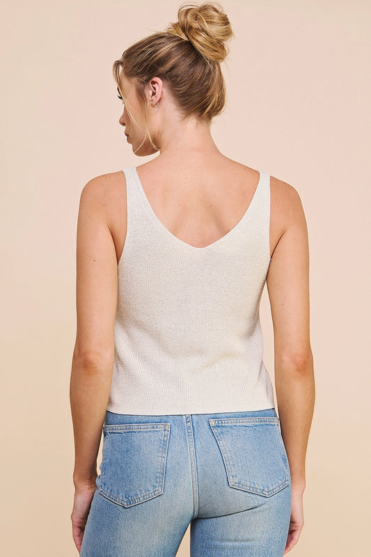 Lightweight Lurex Knit Button Tank Sweater